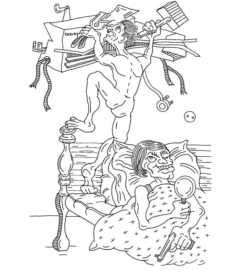 Как назло, его новая подруга совершенно не хотела засыпать, а, наоборот, мучила Ицика еженощно, каждый раз уличая его в том, что он хочет от нее «много, много соитий». Их встречи участились, Ицик все еще надеялся, что фортуна улыбнется ему. Как опытный маньяк, он выжидал своего часа. И вот наконец, собрав все силы, он направил их на удовлетворение алчной секуритатской страсти, и следователь, клацнув резцами в последний раз, с сожалением заснула.