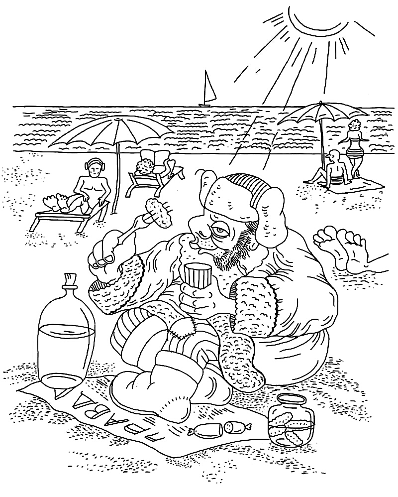 — Эх, Вадя, Вадя. Что же евреи тут с тобой сделали? Совсем ты теперь никуда не годный! — сказал Ваня с грустью и, отобрав у бездыханного друга стакан, выпил его. Огляделся вокруг и, не найдя ни одного соленого огурца, занюхал ушанкой, которую на гастролях всегда носил с собой.